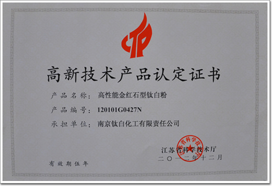 高新技術(shù)產(chǎn)品認(rèn)定證書(金紅石型鈦白粉)